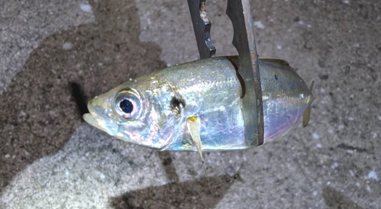 そして、2,3投後に豆アジが釣れた。