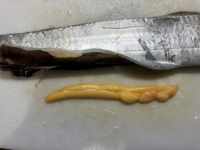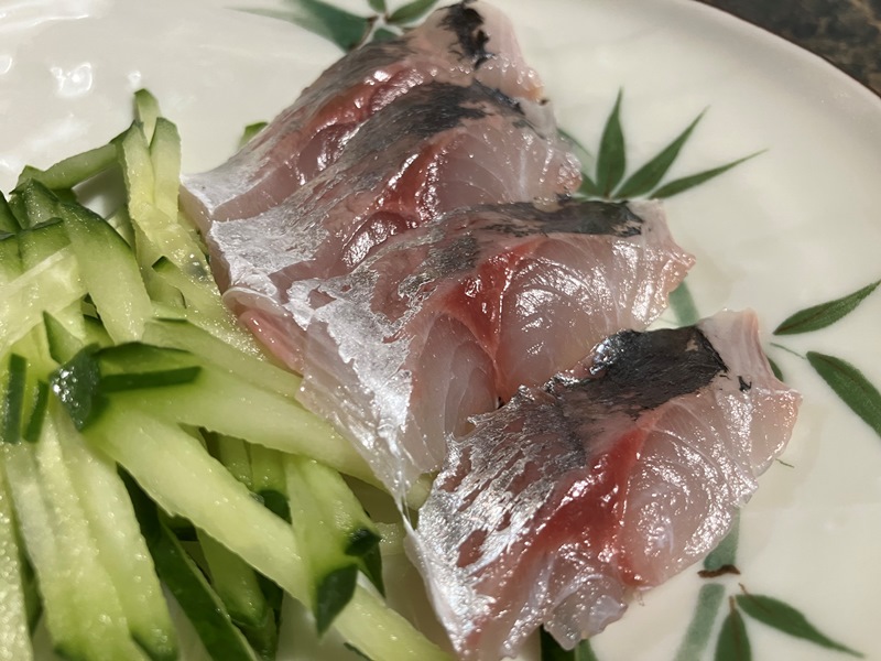 尺アジは捌いている時から脂で手がヌルヌル、刺身にしてもテカテカしていて美味しかったです。やっぱり、ベイト付きのアジは最高!