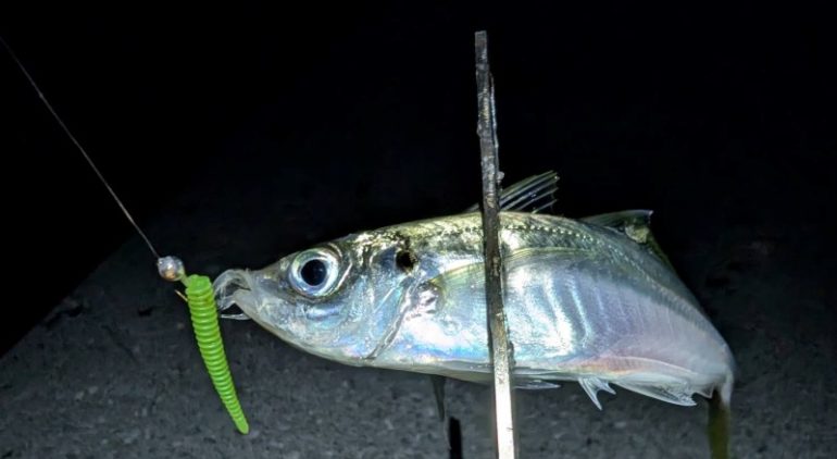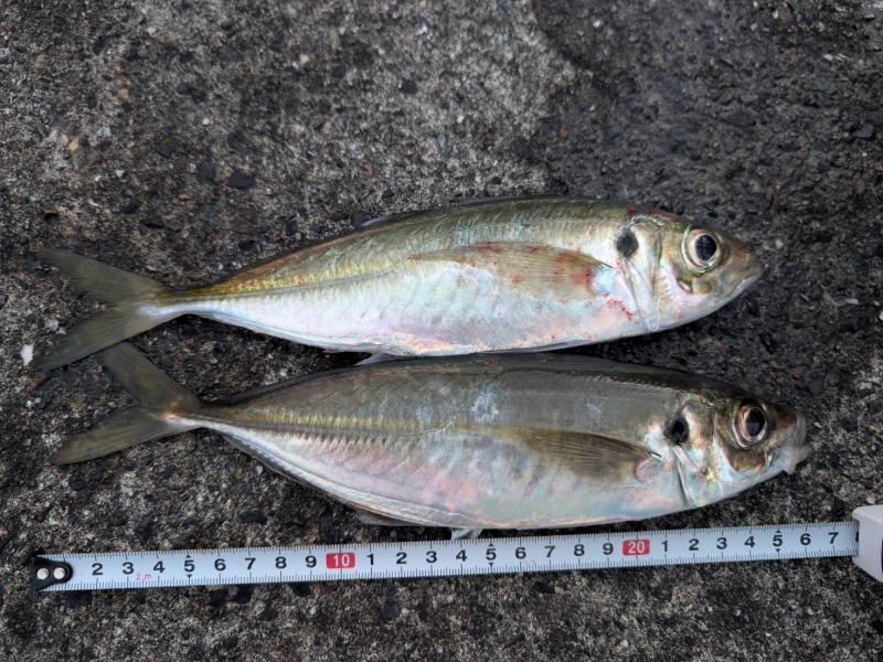 2箇所目、なかなか釣れなかったけど、20cmぐらいのアジが釣れた。