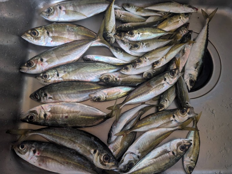 まだサバしか釣れていなくて、アジはまだなようです。