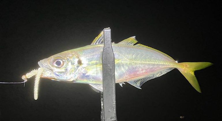 ジグヘッドをSSサイズに落とし、ワームを細くすると面白いようにアジが掛かる。