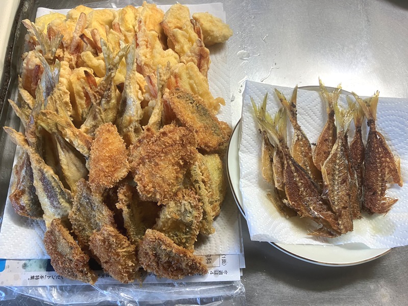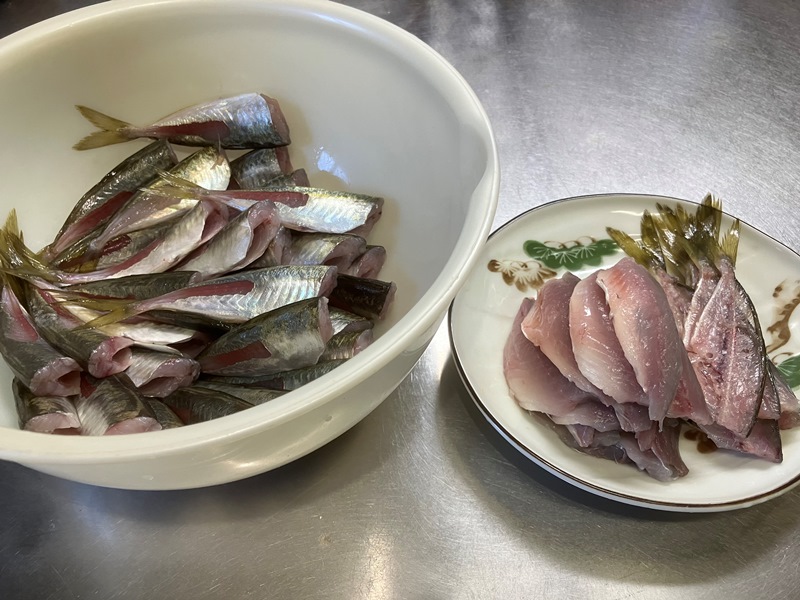 豆アジばかりだったので南蛮漬け、唐揚げ、アジフライ、骨せんべい用に下処理しました。