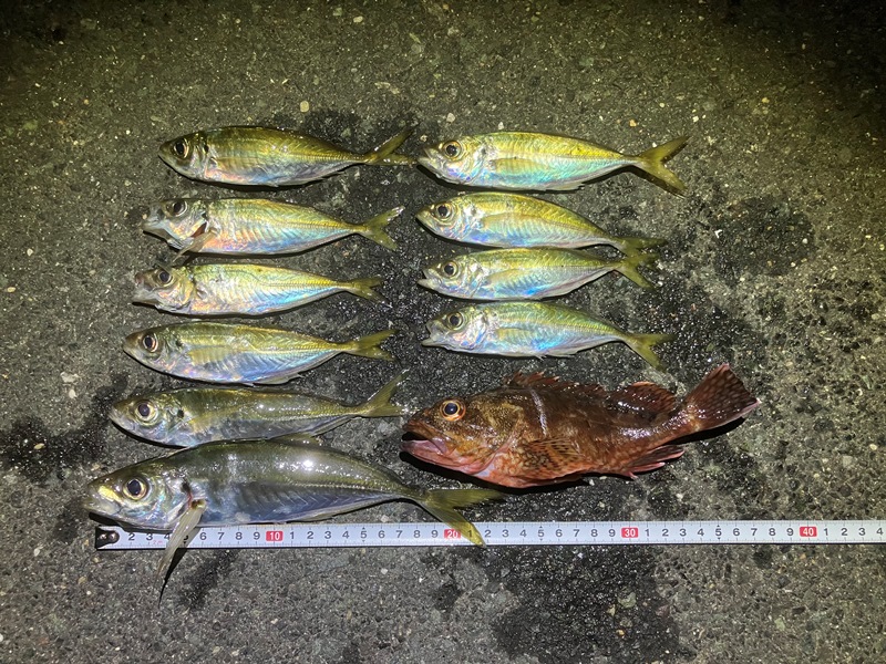 何とか豆アジに混じり、1匹だけまともなアジが釣れた。