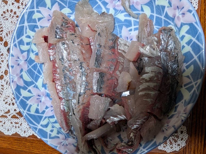 3匹分のアジを刺身でぺろり。あまり脂は乗っていなかった。